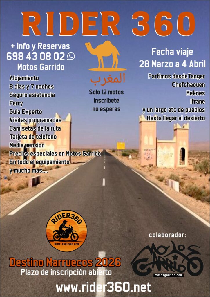 Rider360 Viajes crea Motomorocco, una marca especializada en experiencias y expediciones en moto por Marruecos. Desde 2024 diseñamos travesías cuidadosamente planificadas que recorren las zonas más icónicas del país, adentrándonos en el desierto y en territorios remotos para ofrecer una aventura auténtica y memorable.